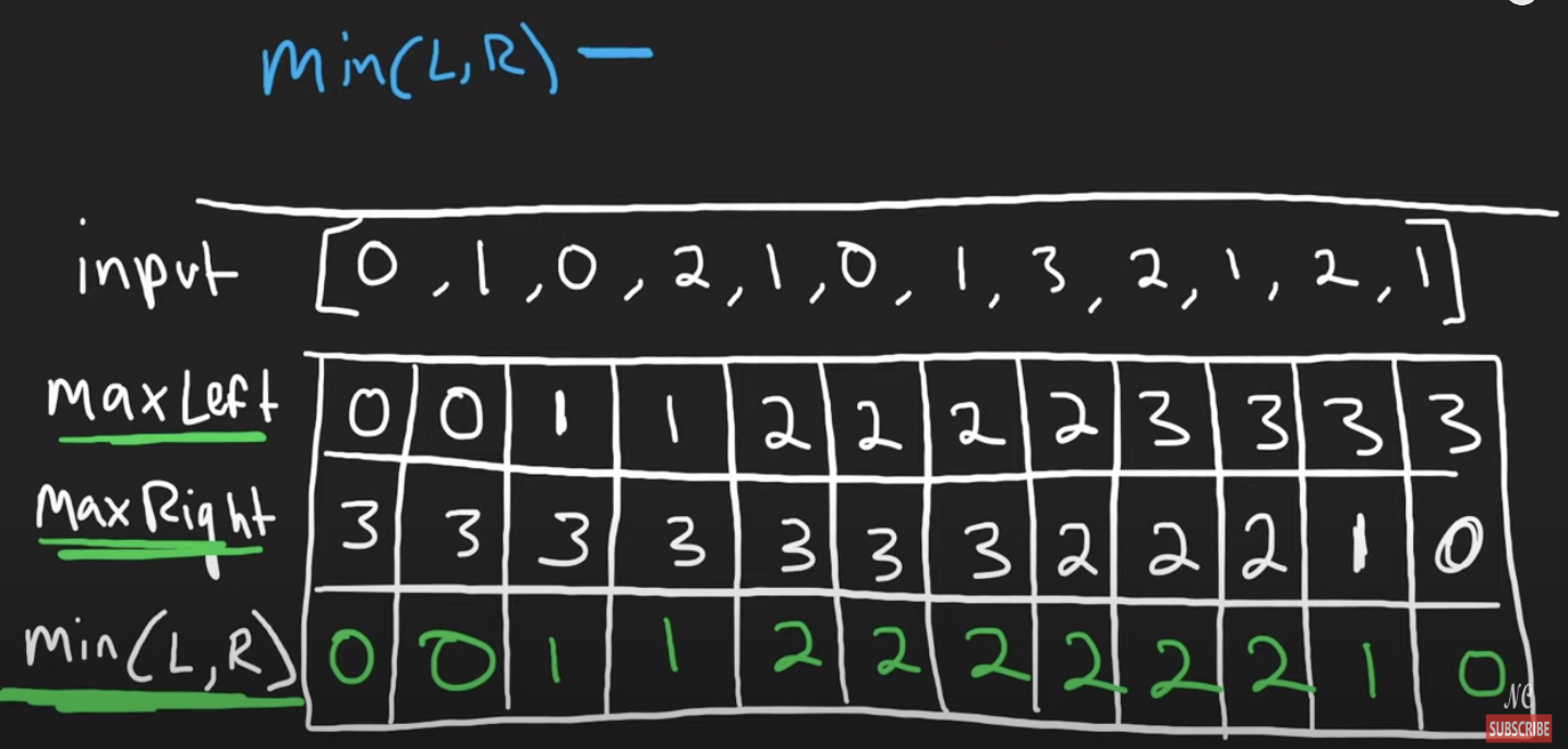 ํด์ค์ ๊ฐ๊ฐ ์ผ์ชฝ๊ณผ ์ค๋ฅธ์ชฝ์ minLeft์ maxRight๋ฅผ ๊ณ์ฐํด์, ํฌ์ธํฐ๋ฅผ ์ด๋ํ๋ฉด์ ๊ณ์ฐํ๋ค.