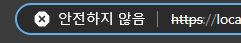 자체 인증서라 이런 에러가 나지만, 그래도 https로 연결이 된 것은 확인할 수 있다.