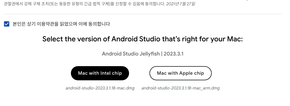 - m으로 시작하는 계열의 cpu면 apple slicon을 선택해서 다운로드