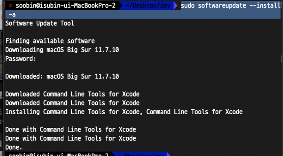 cocoapods 설치하다가 아래 commandlinetools에서 넘어가지 않고 있었다.