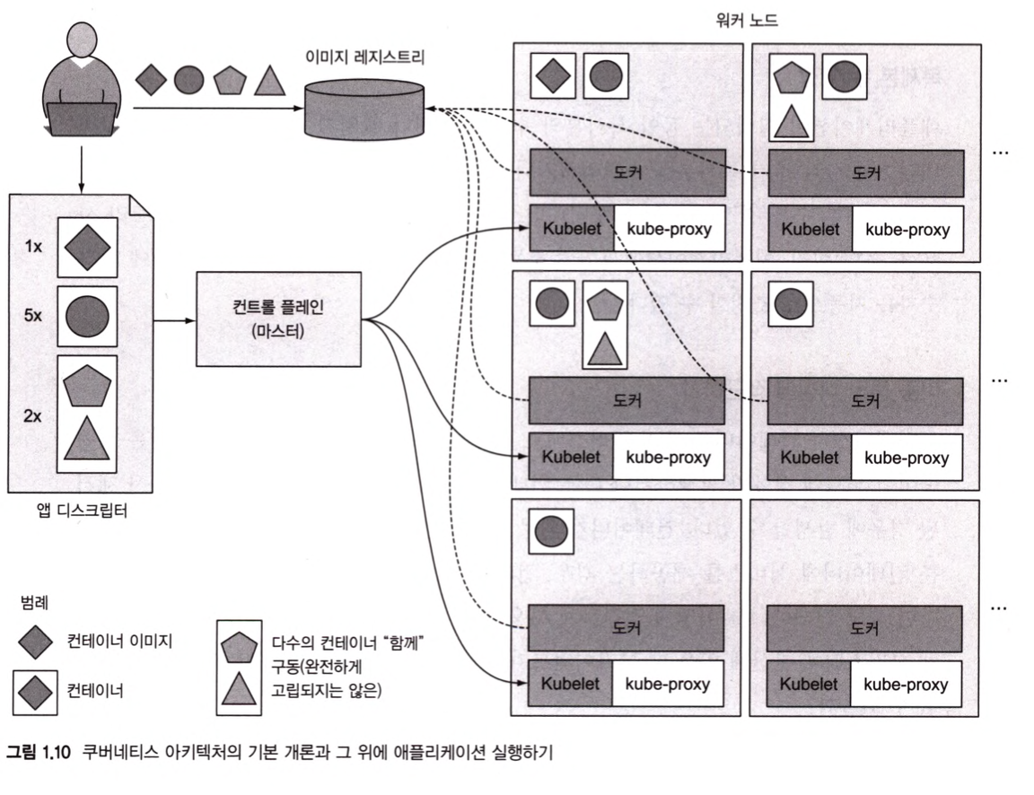 - 개발자가 애플리케이션 매니페스트를 마스터에 게시하면, 쿠버네티스는 해당 애플리케이션을 워커 노드 클러스터에 배포