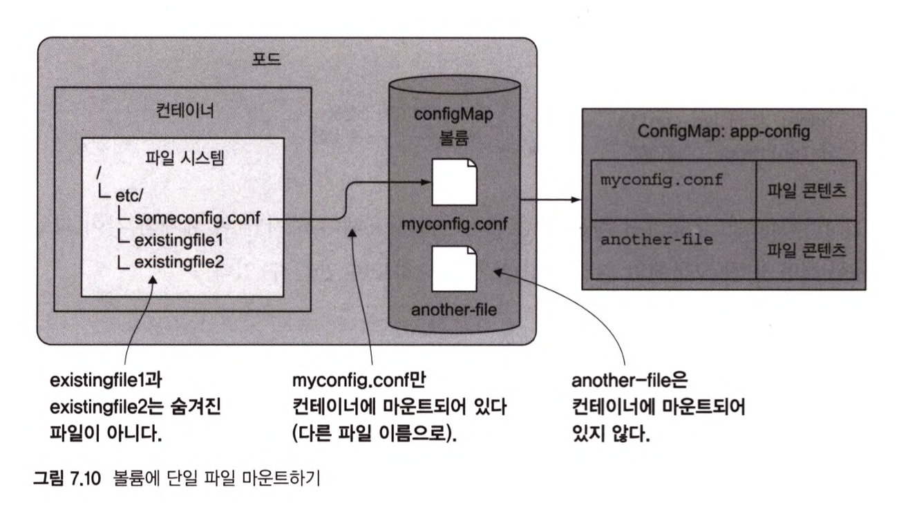 *volumeMount에 subPath 속성으로 디렉터리 안에 파일을 추가할 수 있음.