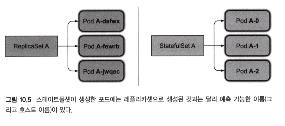 ㄴ 그룹의 특정 파드에서 동작하기를 원하는데 이런 이유로 스테이트풀셋은 거버닝 헤드리스 서비스를 생성해서 각 파드에게 실제 네트워크 아이덴티티를 제공해야 한다.