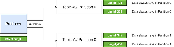 - 예를 들어, 자동차 ID 123은 항상 파티션 0으로 전송됩니다.