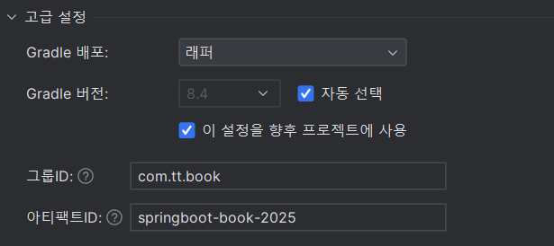 2) 고급 설정 하위 그룹ID와 아티팩트ID 연결