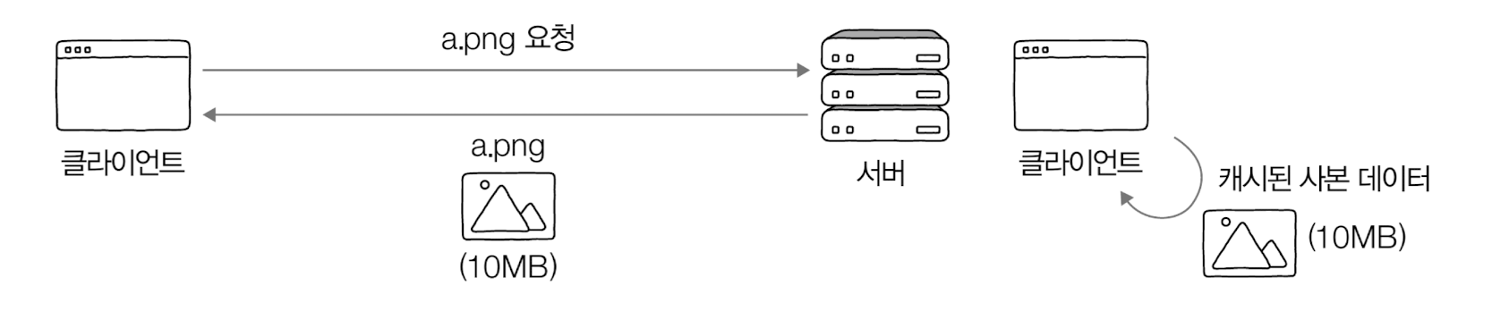 - 캐시는 응답받은 자원의 사본을 임시 저장하여 불필요한 대역폭 낭비와 응답 지연을 방지하는 기술입니다.