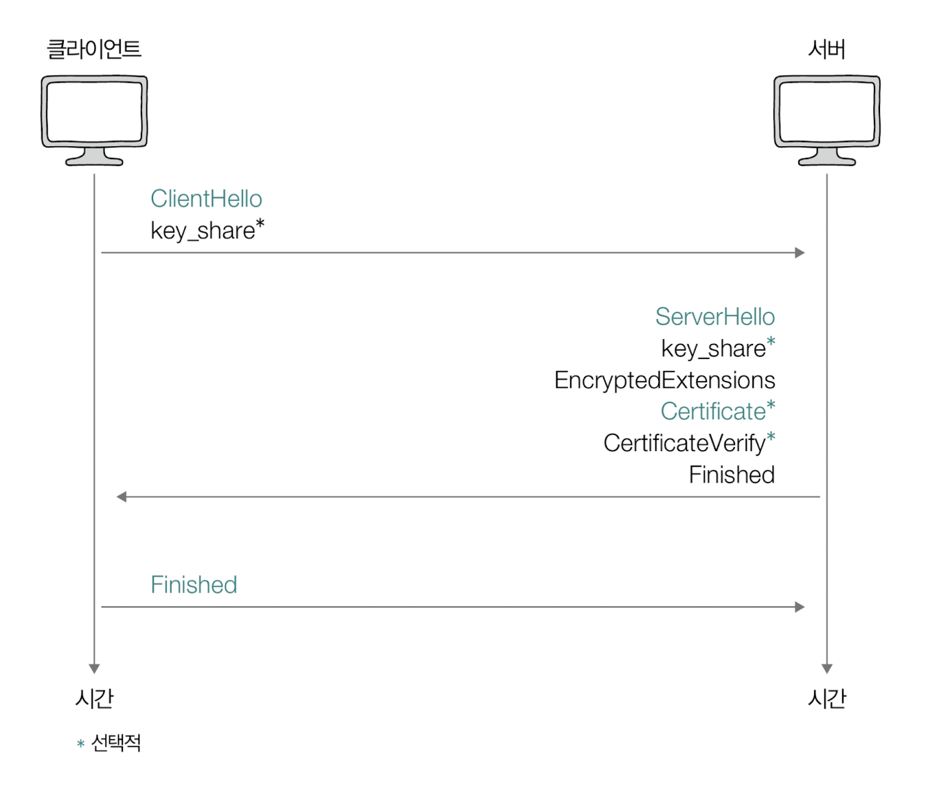 - 이렇게 서버와 클라이언트는 암호화에 사용할 키를 획득하고, 서로가 틀림없다는 사실까지 인증했습니다.
