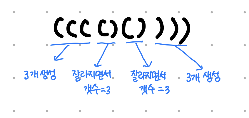((( () () ))) ๋ฅผ ์์๋ก ๋ณด๋ฉด, ๊ฐ๊ฐ์ ๊ธฐํธ๋ ๋ค์๊ณผ ๊ฐ์ ์ญํ ์ ํ๋ค๊ณ ๋ณผ ์ ์๋ค.