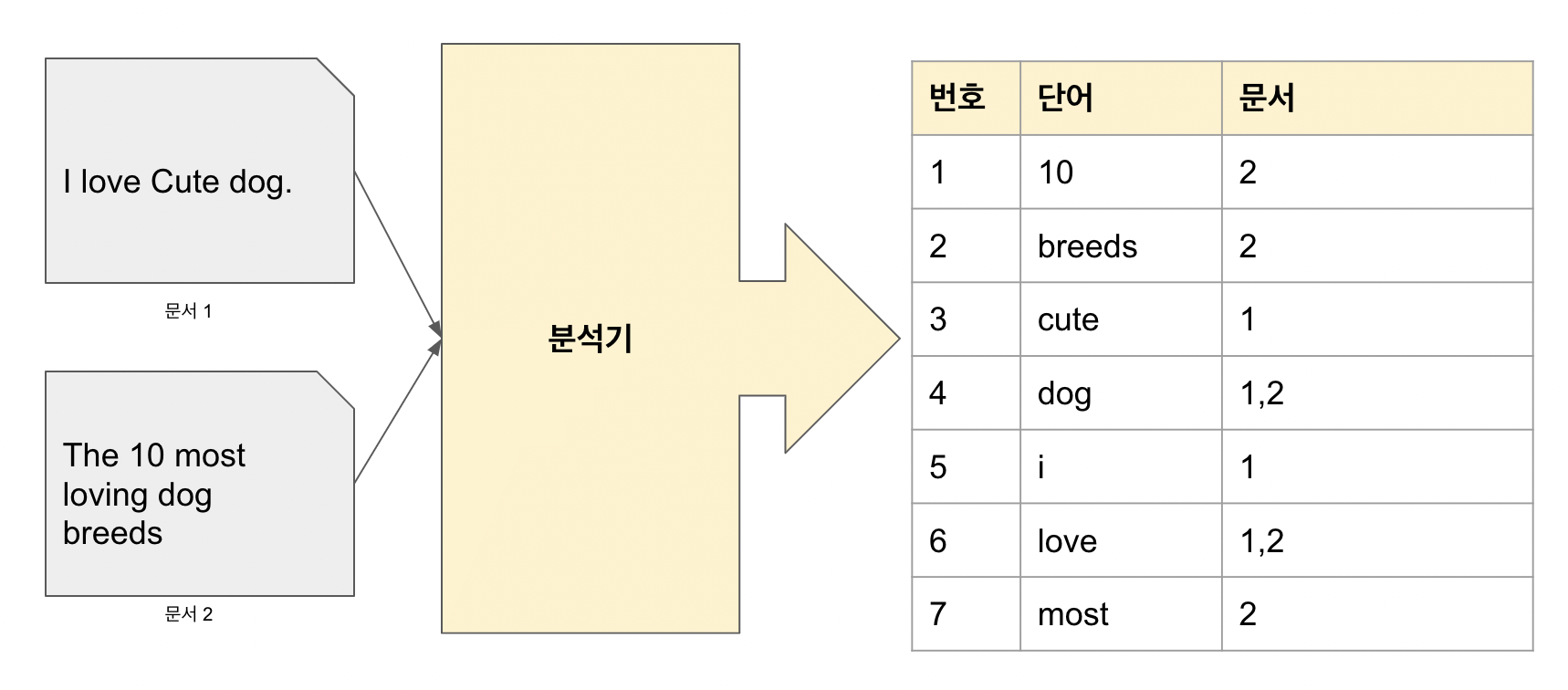 - 분석기는 문자열을 토큰화하고 이를 인덱싱하는데 이를 역인덱싱이라고 한다.