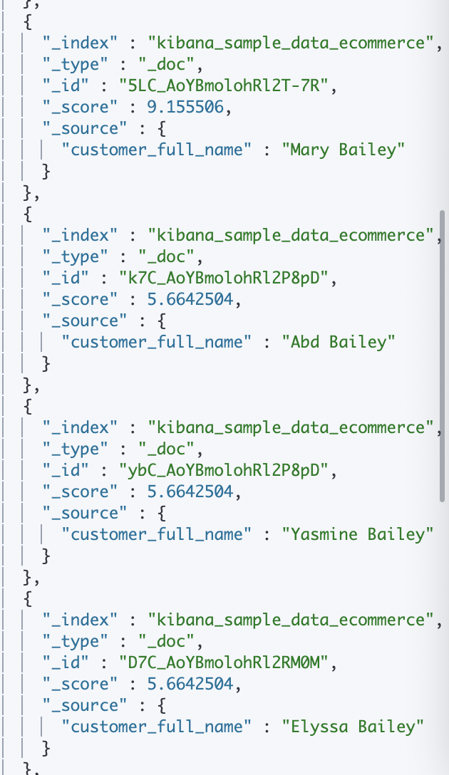 - 위의 경우 customer_first_name이나 customer_last_name 에서 얻은 스코어보다 customer_full_name에서 얻은 스코어를 2배 더 높게 측정된다.